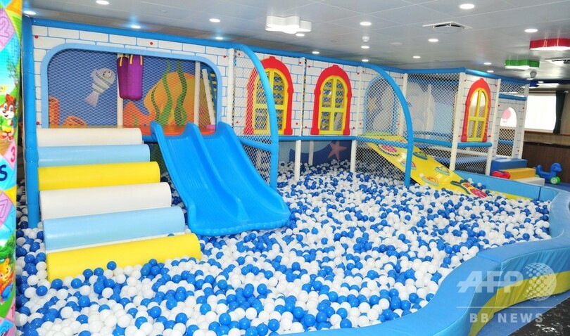 客室は複数の等級に分かれ、船上には多目的ホール、子どものプレースペース、屋外バー、シアターなどのレジャー施設を備えている。エレベーター3台が装備され、ヘリコプターも発着できる。(c)CNS/JCM/AFPBB News
