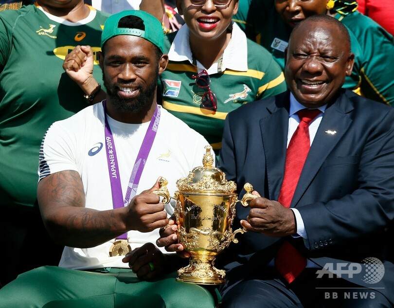 スプリングボクス(Springboks、南アフリカ代表の愛称)初の黒人主将となったシヤ・コリシ(Siya Kolisi)は、「ラグビーW杯王者」と派手に記されたオープントップバスに乗り、ウェブ・エリス・カップ(Webb Ellis Cup、W杯の優勝トロフィー)を掲げた。