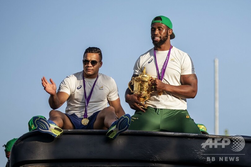 スプリングボクス(Springboks、南アフリカ代表の愛称)初の黒人主将となったシヤ・コリシ(Siya Kolisi)は、「ラグビーW杯王者」と派手に記されたオープントップバスに乗り、ウェブ・エリス・カップ(Webb Ellis Cup、W杯の優勝トロフィー)を掲げた。