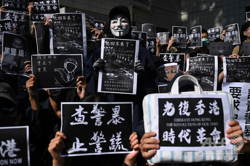【11月8日 AFP】(写真追加)香港で先週末に警官隊と反政府デモ隊が衝突した駐車場ビルから転落し負傷していた男子学生が8日朝、死亡した。男子学生が入院していた病院が明らかにした。数か月にわたる激しい抗議デモで死者が出たことで、香港の緊張はさらに高まるとみられる。