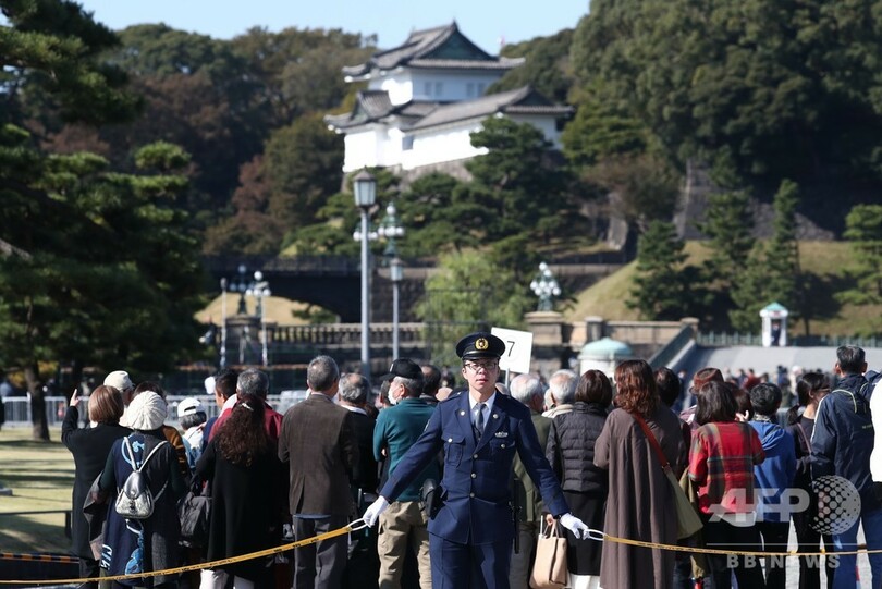 【11月10日 AFP】(写真追加)天皇陛下の即位に伴う祝賀パレード「祝賀御列(しゅくがおんれつ)の儀」が10日午後3時から行われる。皇居周辺には、天皇、皇后両陛下を一目見ようと大勢が列をつくった。(c)AFP