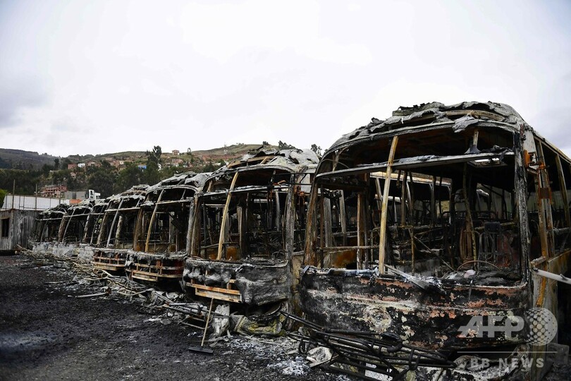 同国の政府所在地ラパス(La Paz)の一部と近郊のエルアルト(El Alto)では10日夜、略奪行為が起き、店舗やオフィスが破壊された。ラパスのルイス・レビジャ(Luis Revilla)市長は「ラパスは恐怖の夜を過ごした」と述べ、暴動によりバス64台が破壊されたと明らかにした。