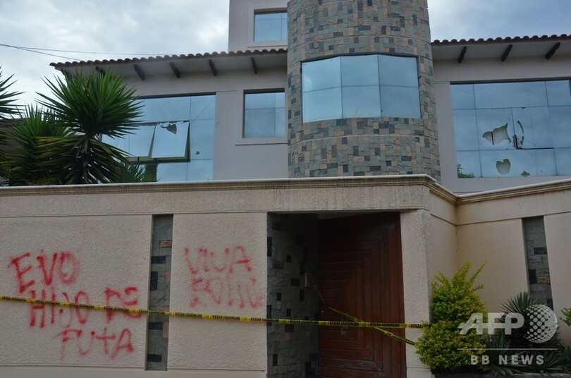 10日の辞任表明後、コカノキ栽培で知られる同国中部チャパレ(Chapare)地方に逃れたモラレス氏は、ツイッター(Twitter)で、反対派勢力に対し同日起きた暴動の「責任を取る」よう要求。同国初の先住民出身大統領だったモラレス氏は、大統領選を争った野党のカルロス・メサ(Carlos Mesa)元大統領と反モラレス派指導者ルイス・フェルナンド・カマチョ(Luis Fernando Camacho)氏について、「人種差別主義者でクーデターを企てた人物として歴史に残るだろう」とも述べた。(c)AFP/Francisco JARA
