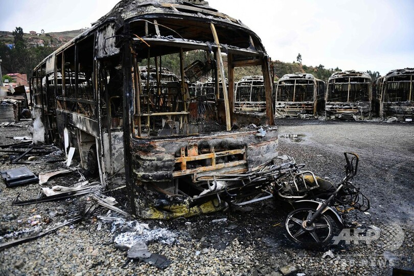 同国の政府所在地ラパス(La Paz)の一部と近郊のエルアルト(El Alto)では10日夜、略奪行為が起き、店舗やオフィスが破壊された。ラパスのルイス・レビジャ(Luis Revilla)市長は「ラパスは恐怖の夜を過ごした」と述べ、暴動によりバス64台が破壊されたと明らかにした。