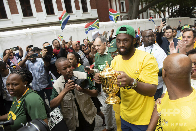 【11月12日 AFP】ラグビーW杯日本大会(Rugby World Cup 2019)を制したスプリングボクス(Springboks、南アフリカ代表の愛称)の優勝パレードが、11日に最終日を迎え、選手たちは、獄中生活を終えた故ネルソン・マンデラ(Nelson Mandela)元大統領が最初にスピーチを行ったケープタウン市庁舎で、熱狂的なファンを前にトロフィーを掲げた。