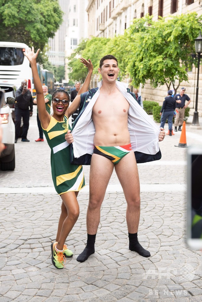 チームの大半のメンバーと比較すると小さく見えたツツ元大主教は、特にトレバー・ニャカネ(Trevor Nyakane)とテンダイ・ムタワリラ(Tendai Mtawarira)の大きさに感銘を受けた様子で、SHのファフ・デクラーク(Faf de Klerk)は同主教に「優勝した後、(英国の)ヘンリー王子(Prince Harry)に披露したことで知られる愛国心の強さを感じさせる下着」を見せたという。(c)AFP