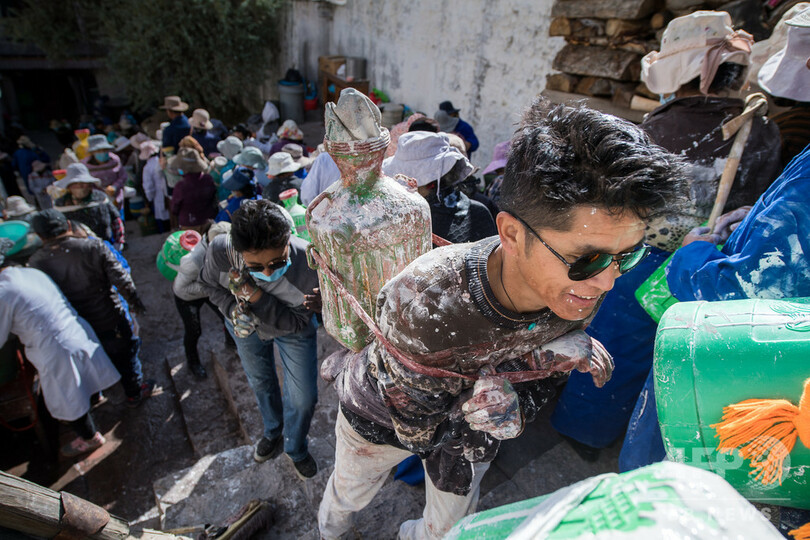 【11月14日 CNS】中国・チベット自治区(Tibet Autonomous Region)のラサ(Lhasa)にあるポタラ宮(Potala Palace)は、毎年恒例となっている壁の塗装シーズンを迎えている。7日には、塗装にハチミツや牛乳を使っているという話題がSNSで「おいしそう!」と話題となり、閲覧数は6000万件以上に達した。