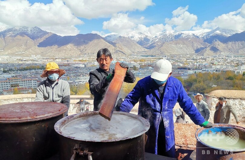 【11月14日 CNS】中国・チベット自治区(Tibet Autonomous Region)のラサ(Lhasa)にあるポタラ宮(Potala Palace)は、毎年恒例となっている壁の塗装シーズンを迎えている。7日には、塗装にハチミツや牛乳を使っているという話題がSNSで「おいしそう!」と話題となり、閲覧数は6000万件以上に達した。