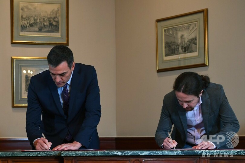 【11月13日 AFP】スペインのペドロ・サンチェス(Pedro Sanchez)首相率いる与党・社会労働党(PSOE)と急進左派ポデモス(Podemos)は12日、連立政権の樹立で原則合意した。左派の穏健派と急進派が連立樹立で合意するのは近代スペイン史上初めてとなる。