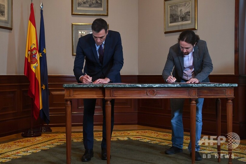 【11月13日 AFP】スペインのペドロ・サンチェス(Pedro Sanchez)首相率いる与党・社会労働党(PSOE)と急進左派ポデモス(Podemos)は12日、連立政権の樹立で原則合意した。左派の穏健派と急進派が連立樹立で合意するのは近代スペイン史上初めてとなる。