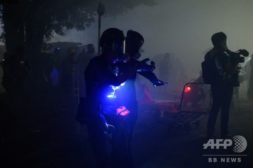 警察は最終的に放水車を使用したが、時折催涙弾を発射しながら撤収を始めた。真夜中が近づく中、キャンパスは引き続き仮設の防護壁の後ろに陣取ったデモ参加者らの手中に置かれた。(c)AFP/Su Xinqi and Jerome Taylor