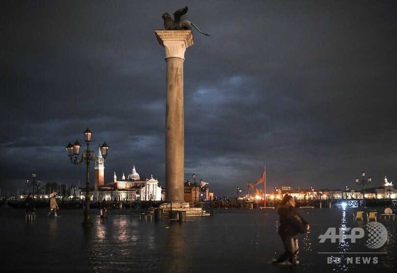 運河の街ベネチアでは至るところで洪水の警報音が鳴り響き、避難所を求めて冠水した道を歩く観光客の姿が見られた。海抜が低い地域にあるサンマルコ広場(St Mark's Square)は特に影響が大きく、同広場にあるサンマルコ大聖堂(St Mark's Basilica)は入り口付近が水に漬かった。当局は夜を徹して大聖堂を監視する方針だ。