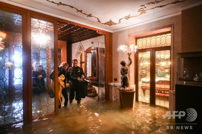 運河の街ベネチアでは至るところで洪水の警報音が鳴り響き、避難所を求めて冠水した道を歩く観光客の姿が見られた。海抜が低い地域にあるサンマルコ広場(St Mark's Square)は特に影響が大きく、同広場にあるサンマルコ大聖堂(St Mark's Basilica)は入り口付近が水に漬かった。当局は夜を徹して大聖堂を監視する方針だ。