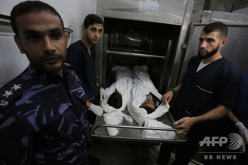 ガザ地区でのイスラエル軍の空爆による死者は、12日以降34人に上った。パレスチナ当局者らの話では、一度に8人を失った家族もいるという。(c)AFP