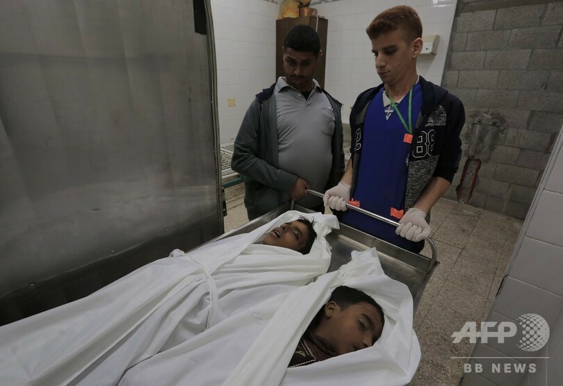 ガザ地区でのイスラエル軍の空爆による死者は、12日以降34人に上った。パレスチナ当局者らの話では、一度に8人を失った家族もいるという。(c)AFP