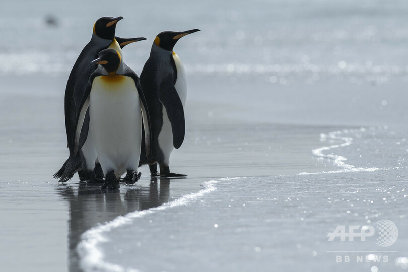 【11月24日 AFP】自尊心を示すかのように頭を高く上げ、一列に並んで砂浜を歩く──英領フォークランド諸島(Falkland Islands)のオウサマペンギンは、同地の観光産業の目玉だ。