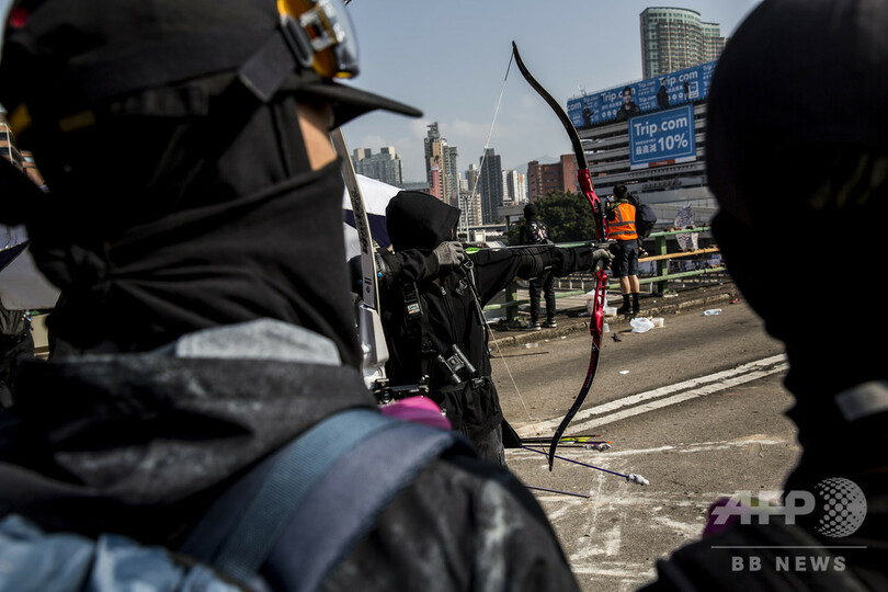 【11月15日 AFP】警察と戦う香港の民主派デモ隊は、木製の投石機で火炎瓶を発射したり、大学のスポーツ学部から盗んだ弓矢を使ったりと、中世の技術を織り交ぜた新戦術を生み出している。
