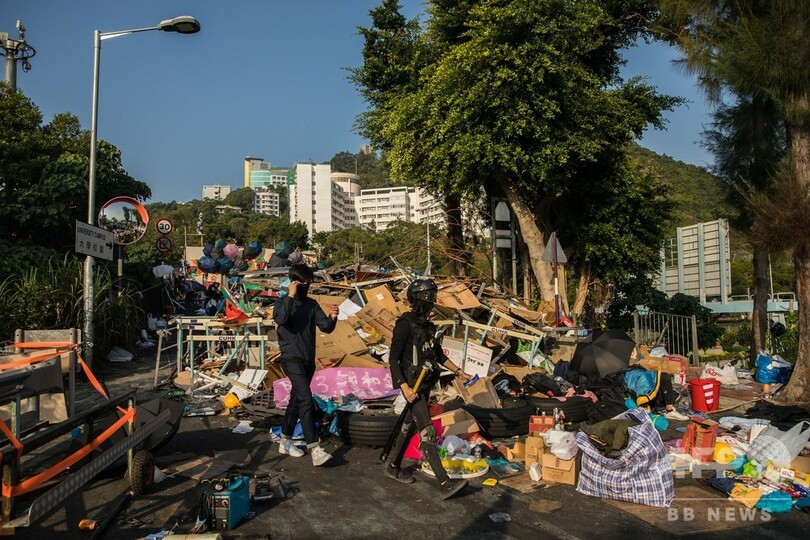 デモ隊は13日夜、同大学前にある中国本土と隣接する九龍(Kowloon)半島と香港の金融中心地をつなぐ主要トンネルを封鎖。警察に封鎖を突破された場合に備えて、投石機をトンネルの出入り口に向けた。