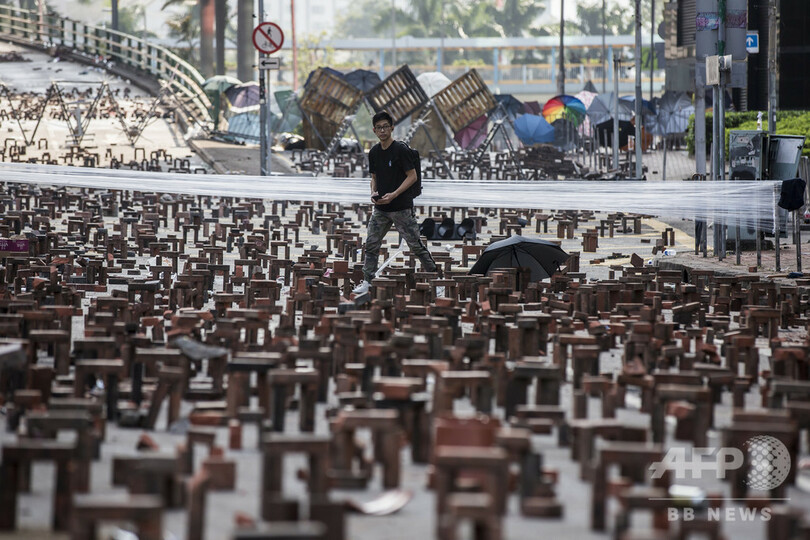 デモ隊は13日夜、同大学前にある中国本土と隣接する九龍(Kowloon)半島と香港の金融中心地をつなぐ主要トンネルを封鎖。警察に封鎖を突破された場合に備えて、投石機をトンネルの出入り口に向けた。