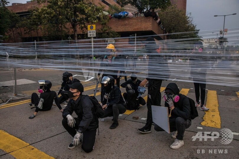 デモ隊は13日夜、同大学前にある中国本土と隣接する九龍(Kowloon)半島と香港の金融中心地をつなぐ主要トンネルを封鎖。警察に封鎖を突破された場合に備えて、投石機をトンネルの出入り口に向けた。