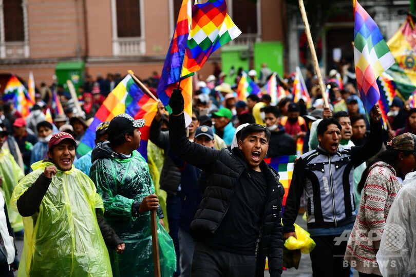 ラパスには近郊のエルアルト(El Alto)から連日抗議デモの参加者らが押し寄せ、モラレス氏の辞任は退陣ではなくクーデターによるものだと訴えている。