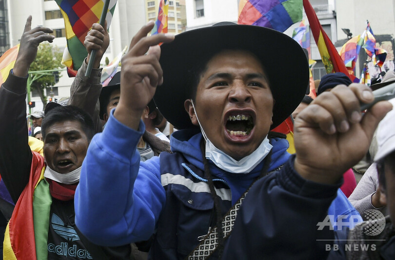 【11月15日 AFP】ボリビアのヘアニネ・アニェス(Jeanine Anez)暫定大統領(52)は14日、大統領辞任を表明しメキシコに亡命したエボ・モラレス(Evo Morales)氏について、次期選挙への出馬はないと言明した。政府所在地のラパス(La Paz)では、モラレス氏を支持しアニェス氏に抗議する大勢の市民がデモ行進に参加した。