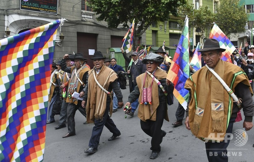 【11月15日 AFP】ボリビアのヘアニネ・アニェス(Jeanine Anez)暫定大統領(52)は14日、大統領辞任を表明しメキシコに亡命したエボ・モラレス(Evo Morales)氏について、次期選挙への出馬はないと言明した。政府所在地のラパス(La Paz)では、モラレス氏を支持しアニェス氏に抗議する大勢の市民がデモ行進に参加した。