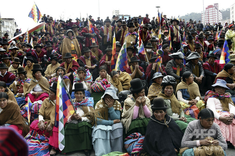 ラパスには近郊のエルアルト(El Alto)から連日抗議デモの参加者らが押し寄せ、モラレス氏の辞任は退陣ではなくクーデターによるものだと訴えている。