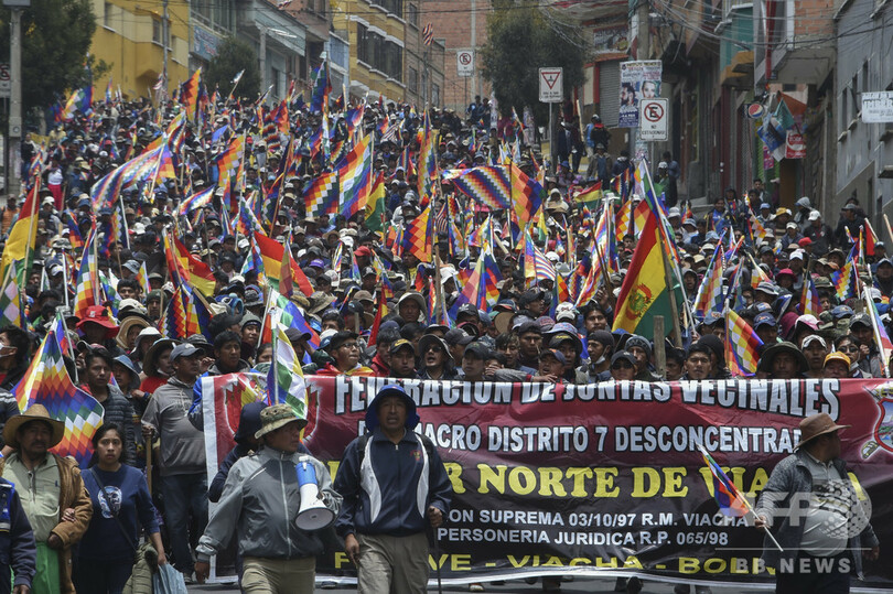 【11月15日 AFP】ボリビアのヘアニネ・アニェス(Jeanine Anez)暫定大統領(52)は14日、大統領辞任を表明しメキシコに亡命したエボ・モラレス(Evo Morales)氏について、次期選挙への出馬はないと言明した。政府所在地のラパス(La Paz)では、モラレス氏を支持しアニェス氏に抗議する大勢の市民がデモ行進に参加した。