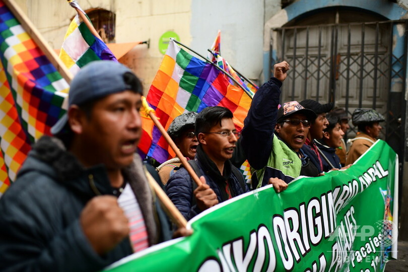 【11月15日 AFP】ボリビアのヘアニネ・アニェス(Jeanine Anez)暫定大統領(52)は14日、大統領辞任を表明しメキシコに亡命したエボ・モラレス(Evo Morales)氏について、次期選挙への出馬はないと言明した。政府所在地のラパス(La Paz)では、モラレス氏を支持しアニェス氏に抗議する大勢の市民がデモ行進に参加した。