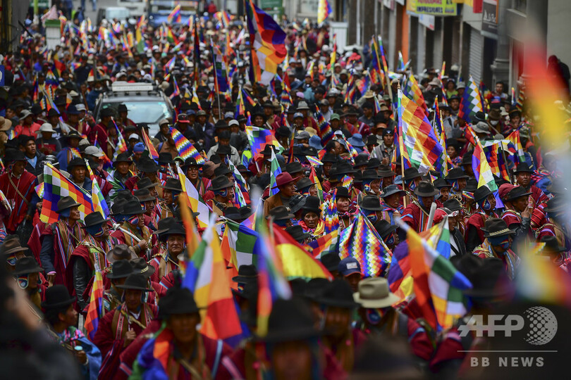 【11月15日 AFP】ボリビアのヘアニネ・アニェス(Jeanine Anez)暫定大統領(52)は14日、大統領辞任を表明しメキシコに亡命したエボ・モラレス(Evo Morales)氏について、次期選挙への出馬はないと言明した。政府所在地のラパス(La Paz)では、モラレス氏を支持しアニェス氏に抗議する大勢の市民がデモ行進に参加した。