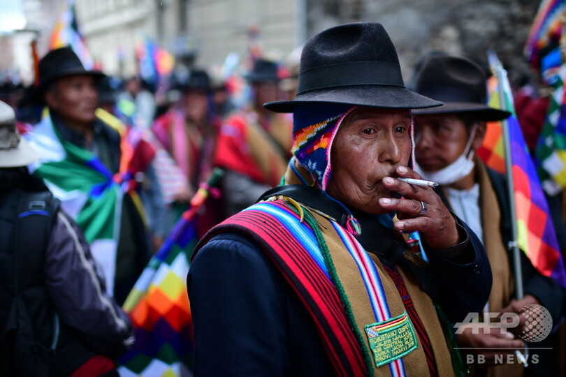 【11月15日 AFP】ボリビアのヘアニネ・アニェス(Jeanine Anez)暫定大統領(52)は14日、大統領辞任を表明しメキシコに亡命したエボ・モラレス(Evo Morales)氏について、次期選挙への出馬はないと言明した。政府所在地のラパス(La Paz)では、モラレス氏を支持しアニェス氏に抗議する大勢の市民がデモ行進に参加した。