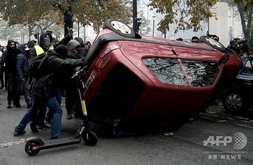 「黄ベスト」発生から1年、パリなどでデモ隊と警官隊が衝突