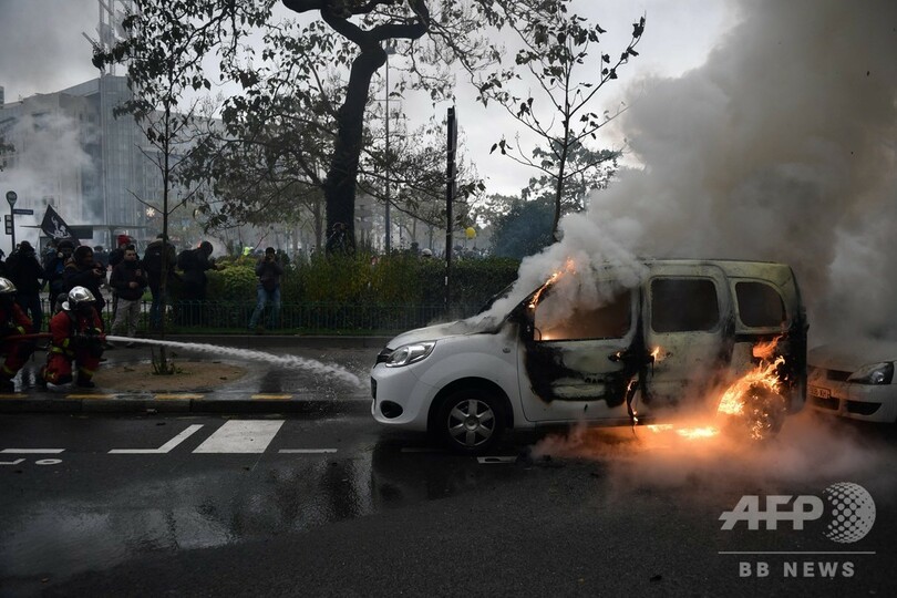 「黄ベスト」発生から1年、パリなどでデモ隊と警官隊が衝突