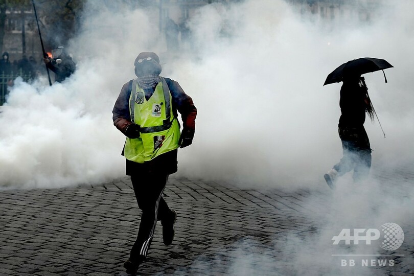 「黄ベスト」発生から1年、パリなどでデモ隊と警官隊が衝突