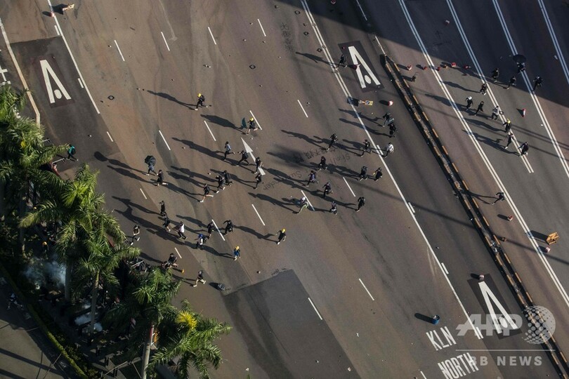 警察官らは同日、複数の実弾を発砲したが、被弾した者はいないとみていると話している。(c)AFP/Anthony WALLACE/Catherine LAI