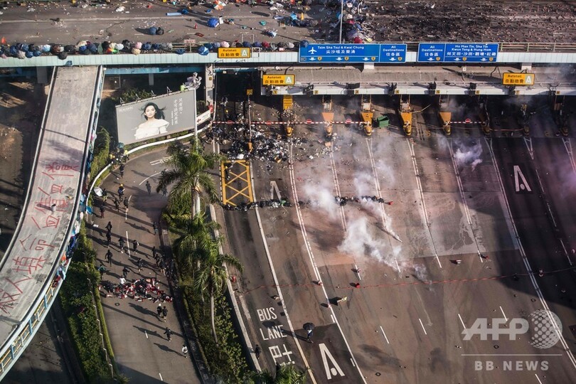 【11月18日 AFP】香港では18日、週末にかけて大学を占拠していた強硬派のデモ参加者数百人を警察が排除しようとする中、機動隊は大学から脱出しようとした民主派のデモ参加者を次々と拘束した。
