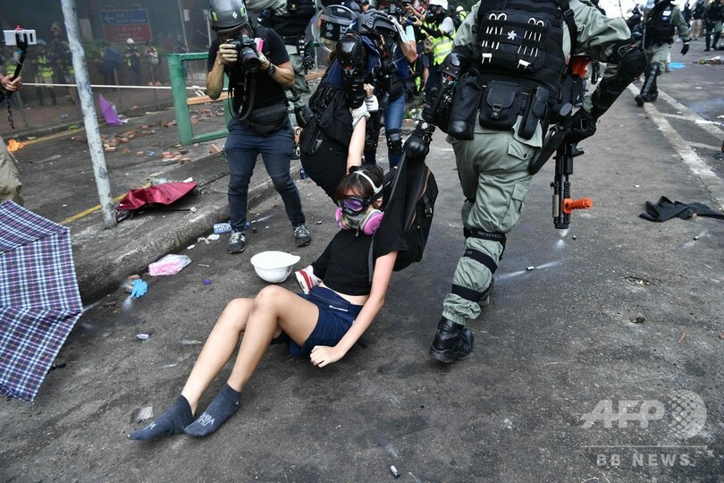 【11月18日 AFP】香港では18日、週末にかけて大学を占拠していた強硬派のデモ参加者数百人を警察が排除しようとする中、機動隊は大学から脱出しようとした民主派のデモ参加者を次々と拘束した。