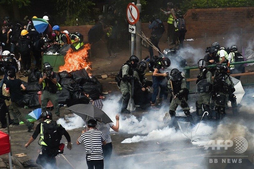 【11月18日 AFP】香港では18日、週末にかけて大学を占拠していた強硬派のデモ参加者数百人を警察が排除しようとする中、機動隊は大学から脱出しようとした民主派のデモ参加者を次々と拘束した。