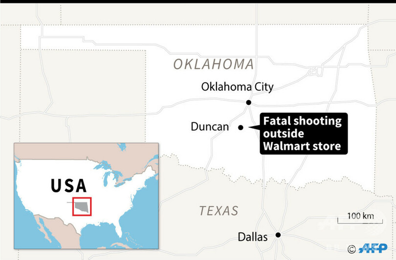 【11月19日 AFP】(更新)米オクラホマ州ダンカン(Duncan)にある小売り大手ウォルマート(Walmart)店舗で18日午前、銃撃事件があり、容疑者を含む3人が死亡した。警察が明らかにした。