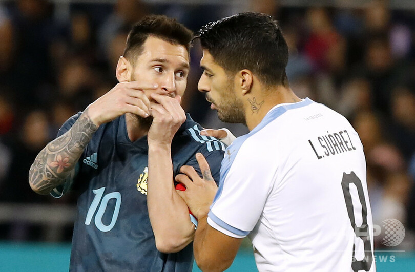 スペイン1部リーグのFCバルセロナ(FC Barcelona)でプレーするメッシとルイス・スアレス(Luis Suarez)が相まみえた試合は、スアレスの1得点1アシストの活躍で後半アディショナルタイムまでウルグアイが2-1でリードしていた。