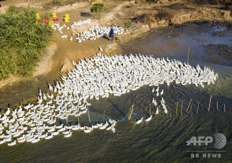 毎年ガチョウを1万羽養殖し、年収は10万元(約155万円)に達するようになり、昔の貧乏な「困難家庭」から「ガチョウ司令官」に大変身、現地の「養殖業で貧乏脱出、富裕化」の典型的な人物となっている。(c)CNS/JCM/AFPBB News