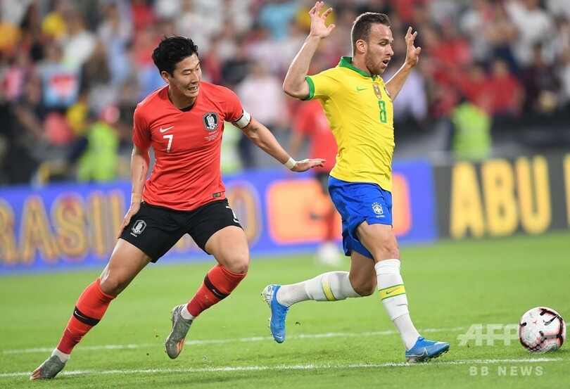 一方、5日前に行われたW杯カタール大会(2022 World Cup)アジア2次予選のレバノン戦を0-0で引き分けていた韓国は、イングランド・プレミアリーグのトッテナム・ホットスパー(Tottenham Hotspur)に所属するFW孫興民(Heung-Min Son、ソン・フンミン)を先発で起用したものの、ブラジルに力負けした。(c)AFP