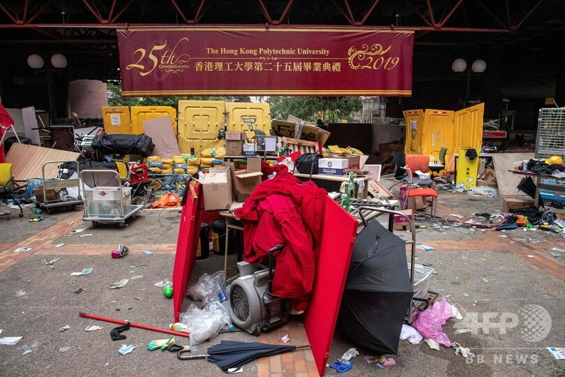 【11月20日 AFP】香港の大学キャンパス内で立てこもりを続ける民主派の抗議デモ参加者の一部は、包囲している警察から逃れようと創意工夫を凝らしている。腕に食品用ラップを巻き、懐中電灯を手に持って下水道からの脱出も模索している。