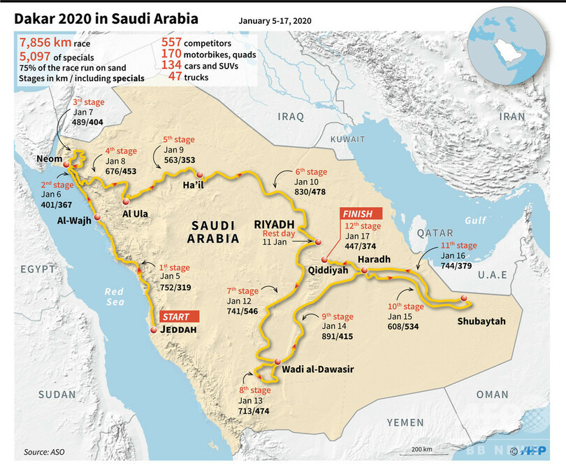 【11月21日 AFP】2020年1月5日に開幕するダカールラリー(Dakar Rally 2020)のコース概要が、20日に発表された。12日間にわたりサウジアラビアで行われるレースについては、議論が巻き起こっている。