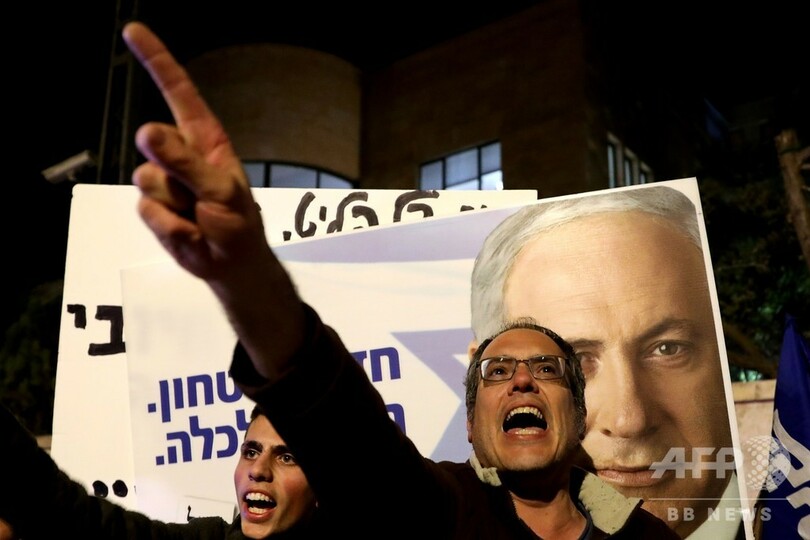 ネタニヤフ氏は法律上、有罪が確定するまで首相を辞任する必要はないが、政治的圧力は強まるとみられる。また、同氏が議会に不訴追特権を求める可能性もある。(c)AFP
