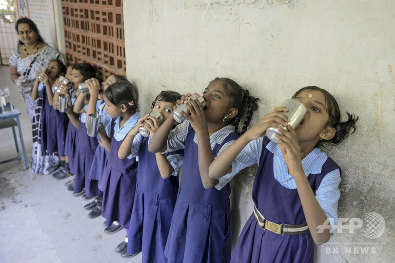 【12月4日 AFP】インド・テランガナ(Telangana)州セクンデラバード(Secunderabad)にある学校の教室で、水を飲む児童。