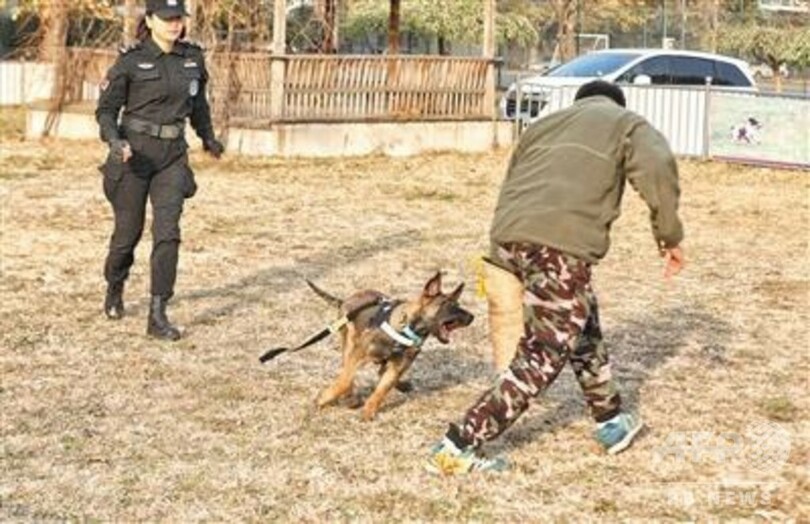 「斯基丁」は公安部から表彰を受けた5歳のベルジアン・シェパード・ドッグだ。強靱(きょうじん)な肉体と優れた臭覚と頭脳で多くの功績を挙げている。北京警察犬基地が独自に育てた優秀な警察犬の中の警察犬だ。もう1頭は4歳の「阿瑞」で、海外から導入した成年犬のベルジアン・シェパード・ドッグ。多くの試験に合格し、かむ力と爆発力と攻撃力は最強だ。