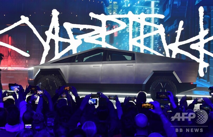米カリフォルニア州で開かれた完全電気自動車「サイバートラック(Cybertruck)」の披露会では、車体を大きなハンマーでたたくという大胆なパフォーマンスが行われ、9ミリ銃弾にも耐えられることを示すビデオが公開された。