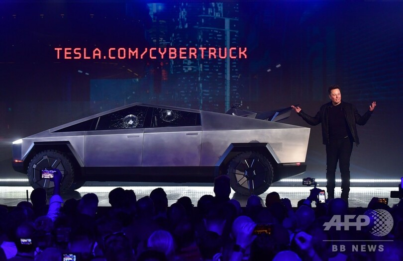 米カリフォルニア州で開かれた完全電気自動車「サイバートラック(Cybertruck)」の披露会では、車体を大きなハンマーでたたくという大胆なパフォーマンスが行われ、9ミリ銃弾にも耐えられることを示すビデオが公開された。